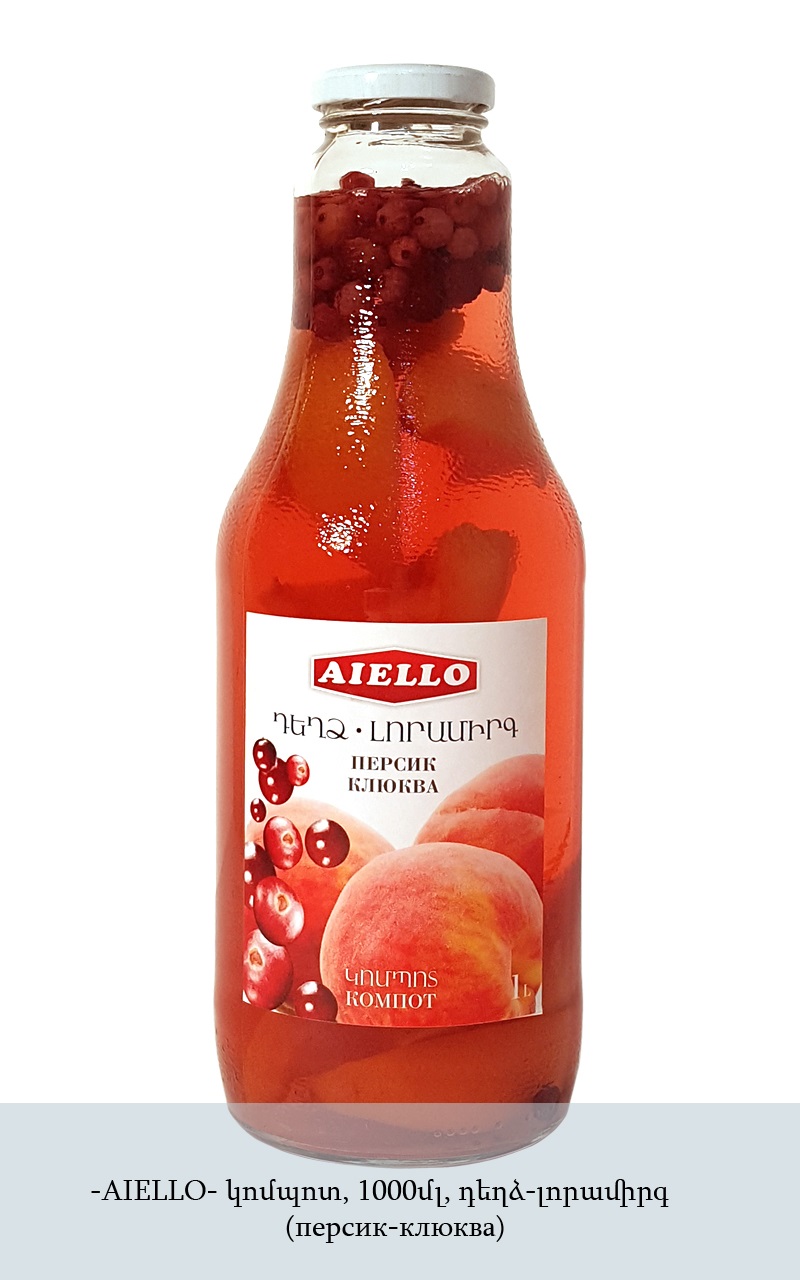 -AIELLO- կոմպոտ, 1000մլ, դեղձ-լորամիրգ(персик-клюква)