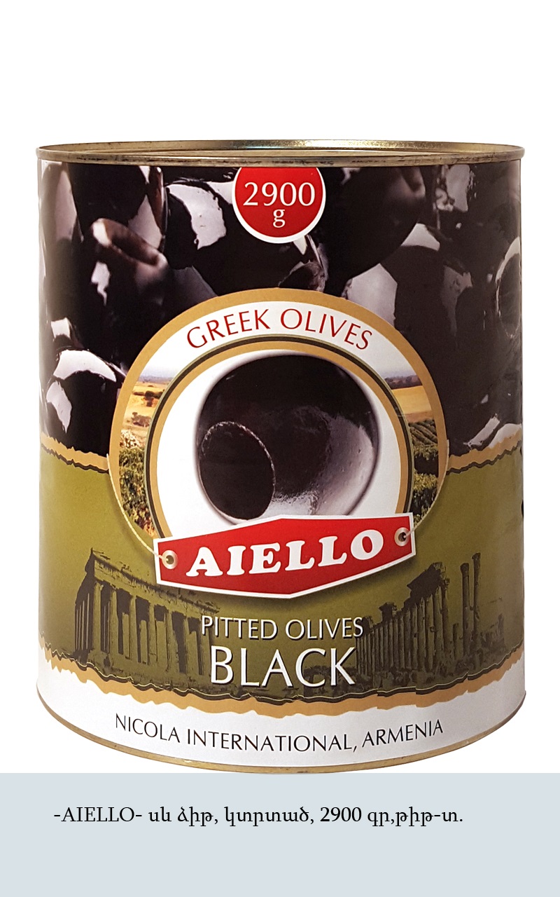 -AIELLO- սև ձիթ, կորիզահանած, 2000 գր, պոլ.թ.