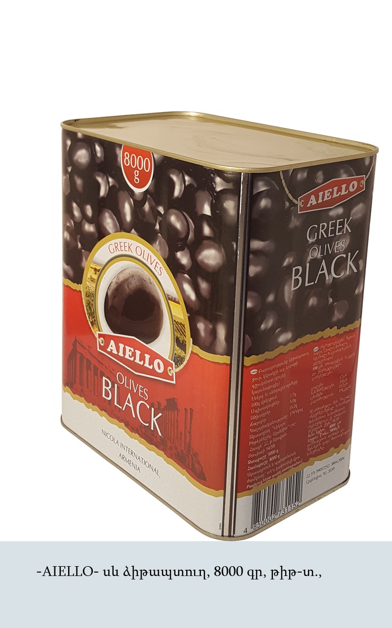 -AIELLO- սև ձիթապտուղ,8000 գր,(180-200),թիթ-տ., ECO